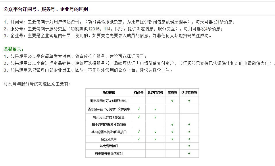 了解訂閱號、服務(wù)號和企業(yè)微信的區(qū)別后,選擇想要的帳號類型;