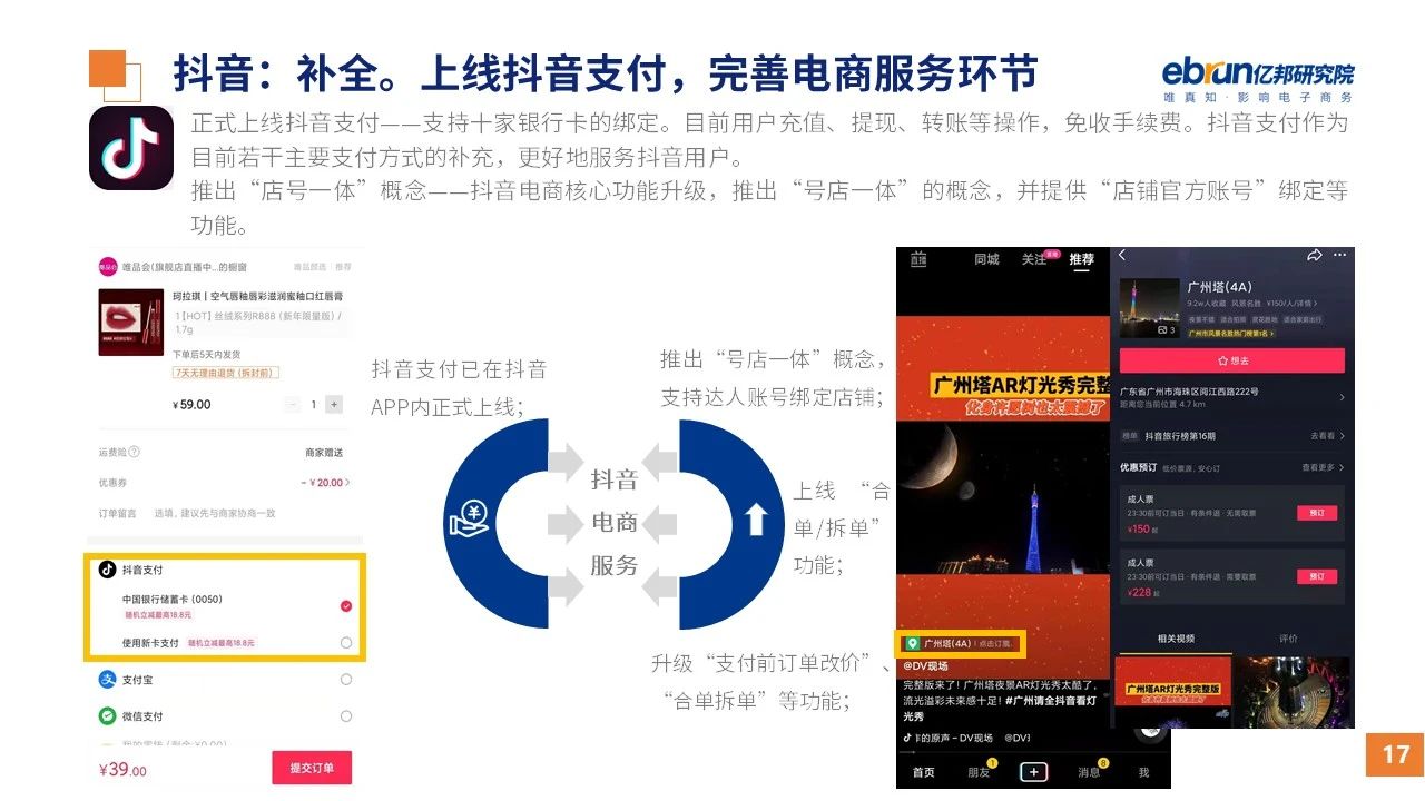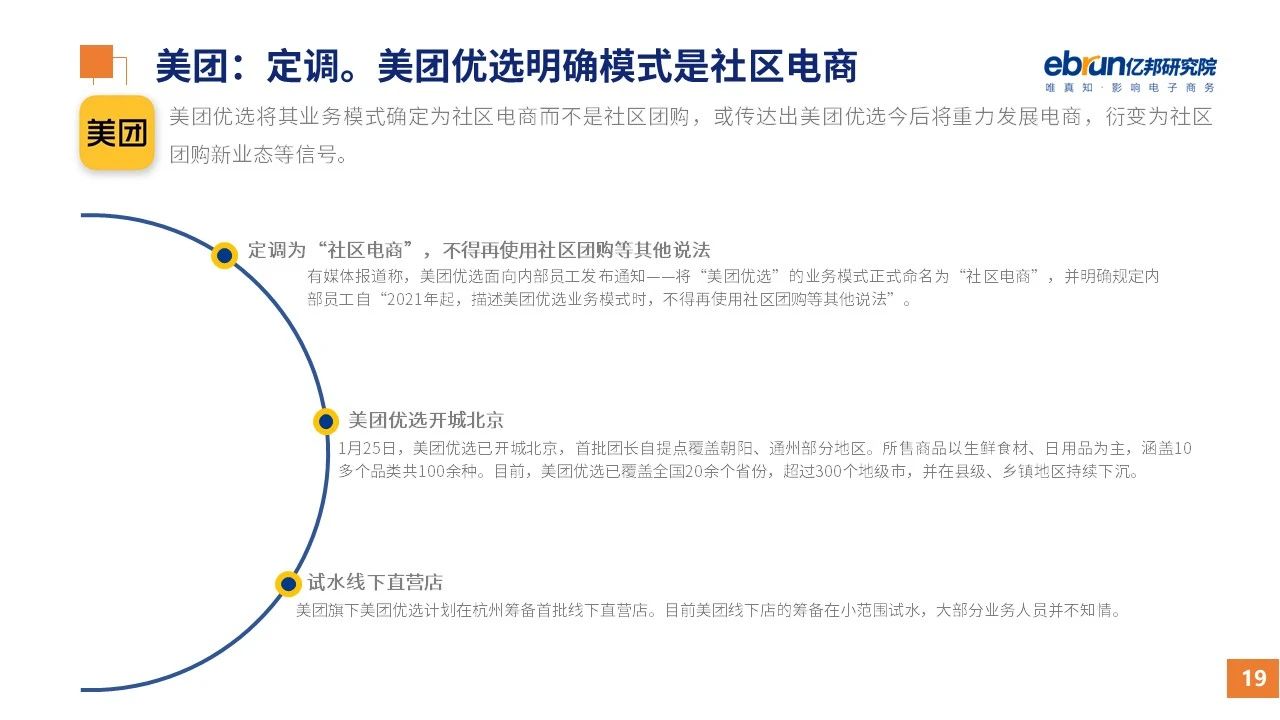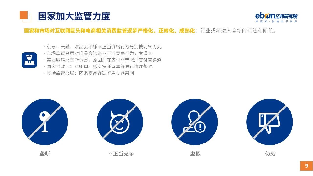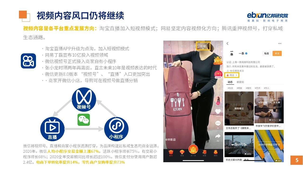 縱觀2021年1月,各平臺豐富自有生態(tài)布局,如淘寶直播(點淘)加入短視頻模式、騰訊重押視頻號、快手加碼電商和小程序、抖音推出支付等;視頻內容成為各平臺未來重點發(fā)力方向;“九不得”新規(guī)發(fā)布后社區(qū)團購仍熱情不減;國家和市場對互聯(lián)網巨頭和電商相關消費加大監(jiān)管力度……你信和不信,你知道和不知道的,都在這份億邦動力研究院正式發(fā)布的