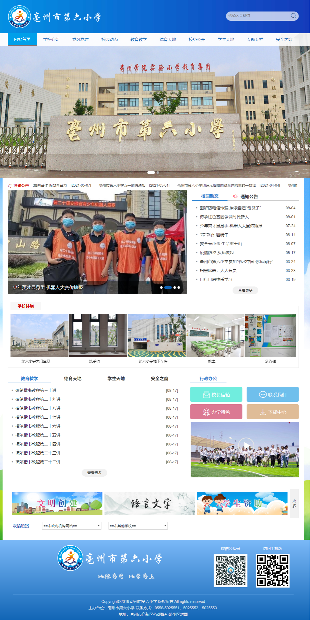 亳州市第六小學(xué)&mdash&mdash暨亳州學(xué)院實(shí)驗(yàn)小學(xué)教育集團(tuán)分校,是一所全日制、現(xiàn)代化、智慧化的公辦小學(xué)??傆玫孛娣e約50畝,總建筑面積約24000平方米,總投資1億元,辦學(xué)規(guī)模48個(gè)班,可容納2400名學(xué)生。??亳州市第六小學(xué)是一所建設(shè)高標(biāo)準(zhǔn)、設(shè)施高要求的智慧化校園。學(xué)校以&ldquo以德為行,以學(xué)為上&rdquo為校訓(xùn),把&ldquo育人&rdquo作為一切工作的出發(fā)點(diǎn)和落腳點(diǎn),營造濃郁的學(xué)校文化氛圍,促進(jìn)孩子全面發(fā)展、個(gè)性發(fā)展。學(xué)校致力于打造適合每個(gè)孩子的特色教育,把每個(gè)孩子放在心上,讓孩子靈性生...